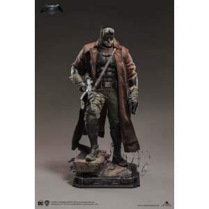 The Knightmare Batman está inspirado en la “Secuencia de Knightmare” en Batman v Superman: Dawn of Justice. Para capturar al personaje, hemos optado por una poderosa pose de pie. Batman sostiene su arma en la mano derecha y un par de binoculares en la izquierda. Su mano izquierda también se puede cambiar. Su abrigo está hecho de tela real e incluirá desgaste alrededor de los bordes para que el atuendo sea más fiel a la película. Los coleccionistas también pueden optar por exhibir la estatua con las gafas puestas o apagadas.